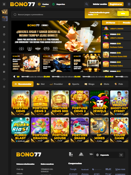 Descubre Bono77, el casino online con licencia de Curaçao. Juega póker, ruleta y slots con bonos de bienvenida hasta $2,777 MXN.